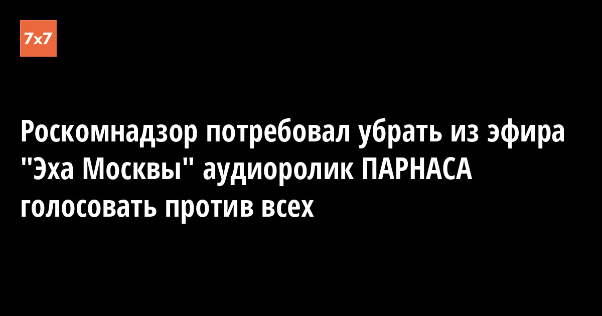 Роскомнадзор потребовал убрать из эфира "Эха Москвы" аудиоролик Партии народной свободы с призывом голосовать против всех на выборах в Госдуму 4 декабря. Об этом сообщается на сайте Российского народно-демократического союза. Врио руководителя Роскомнадзора Константин Протопопов направил письмо главному редактору радиостанции Алексею Венедиктову. В тексте письма говорится, что призыв голосовать против всех "содержит признаки агитации, не предусмотренной федеральным законом "О выборах...". В письме также отмечается, что Роскомнадзор "вправе применять в установленной сфере ведения меры профилактического и пресекательного характера". Протопопов потребовал от Венедиктова "незамедлительно прекратить нарушение законодательства Российской Федерации". Ранее Конституционный суд признал агитацию "против всех" законной.