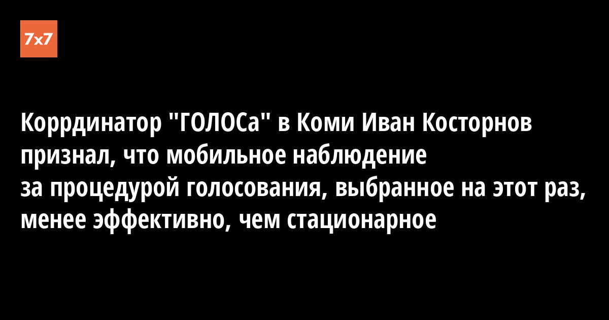 Сегодня, 5 декабря, координатор ассоциации «ГОЛОС» по Коми Иван Косторнов признал, что мобильное наблюдение за голосованием, которое было избрано на этот раз в качестве основной формы мониторинга за выборами в Коми, не имеет той эффективности, которая присутствует при стационарном наблюдении.