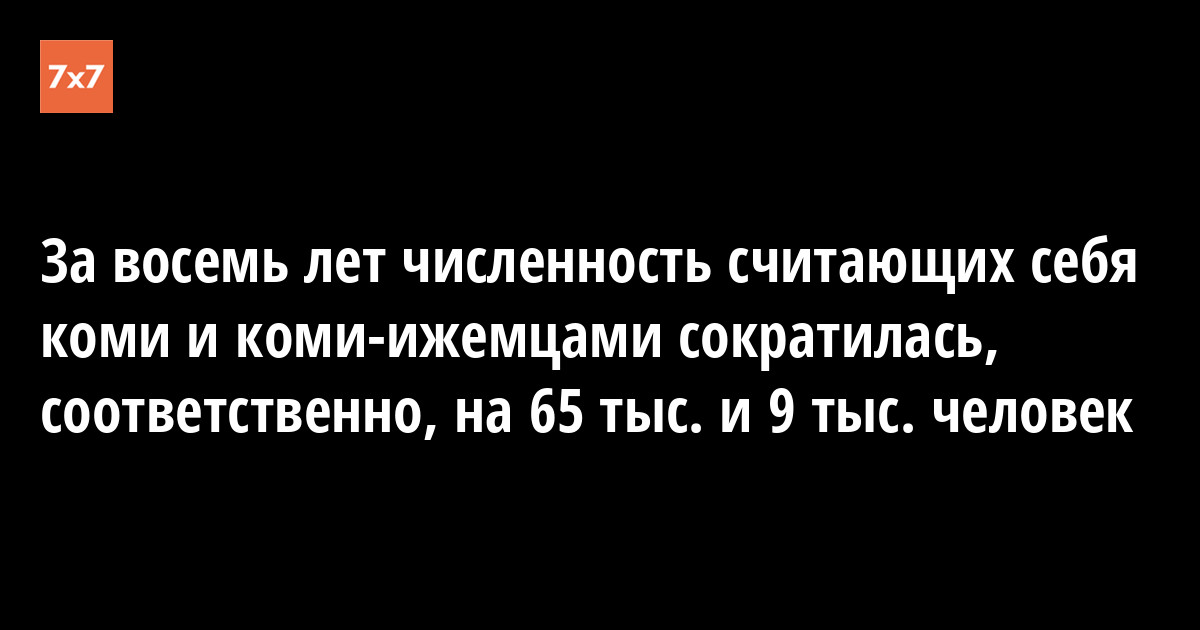 В Республике Коми, согласно данным переписи 2010 года, численность населения составила 901,2 тыс. человек (в 2002 году в Коми проживало 1018,7 тысяч человек). В ходе переписи свою национальность как коми обозначили 228 тыс. 235 человек, 6420 назвались коми-ижемцами. По итогам переписи 2002 года коми называли себя 293 406 человек, коми-ижемцами – 15 607.