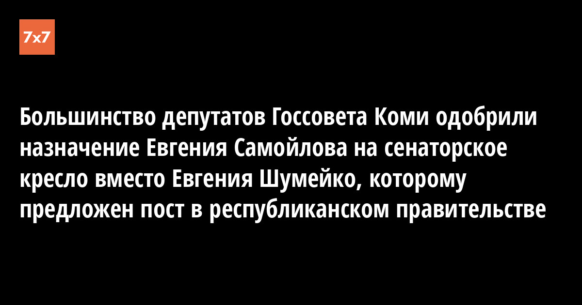 На сенаторском посту Евгений Самойлов должен заменить Евгения Шумейко, который на днях принял приглашение главы Коми Вячеслава Гайзера перейти на работу в республиканское правительство и курировать вопросы развития угольной отрасли.