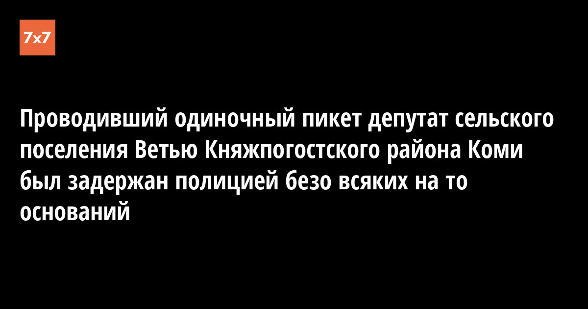 Проводивший одиночный пикет депутат сельского поселения Ветью Княжпогостского района Коми был задержан полицией безо всяких на то оснований