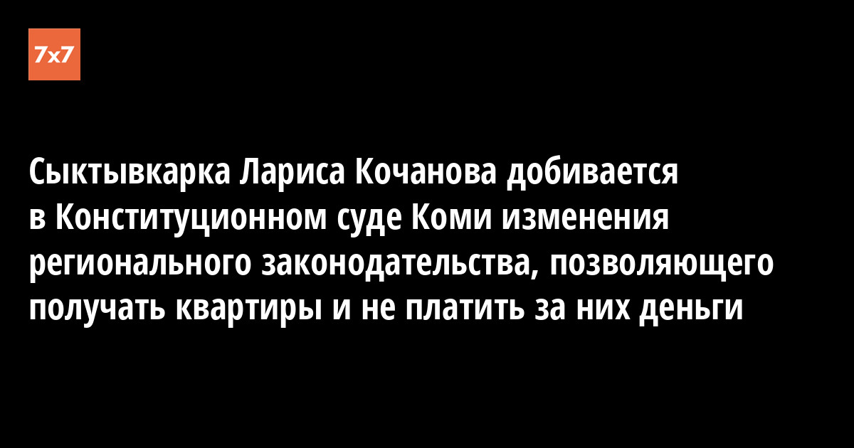 В ожидании исполнения судебных решений г-жа Кочанова подала жалобу в Конституционный суд Коми с тем, чтобы оспорить те положения злополучного постановления регионального правительства, которые, как сказано в ее заявлении, «предоставляют возможность отказа Агентством по соцразвитию РК продавцам жилых помещений перечислений по прошедшим госрегистрацию договорам купли-продажи в случае смерти гражданина-получателя льготы». В ее случае, полагает Лариса Кочанова, были нарушены 8 статей Конституции Коми, касающиеся прав и свобод человека и гражданина, а также права частной собственности и права на жилище.