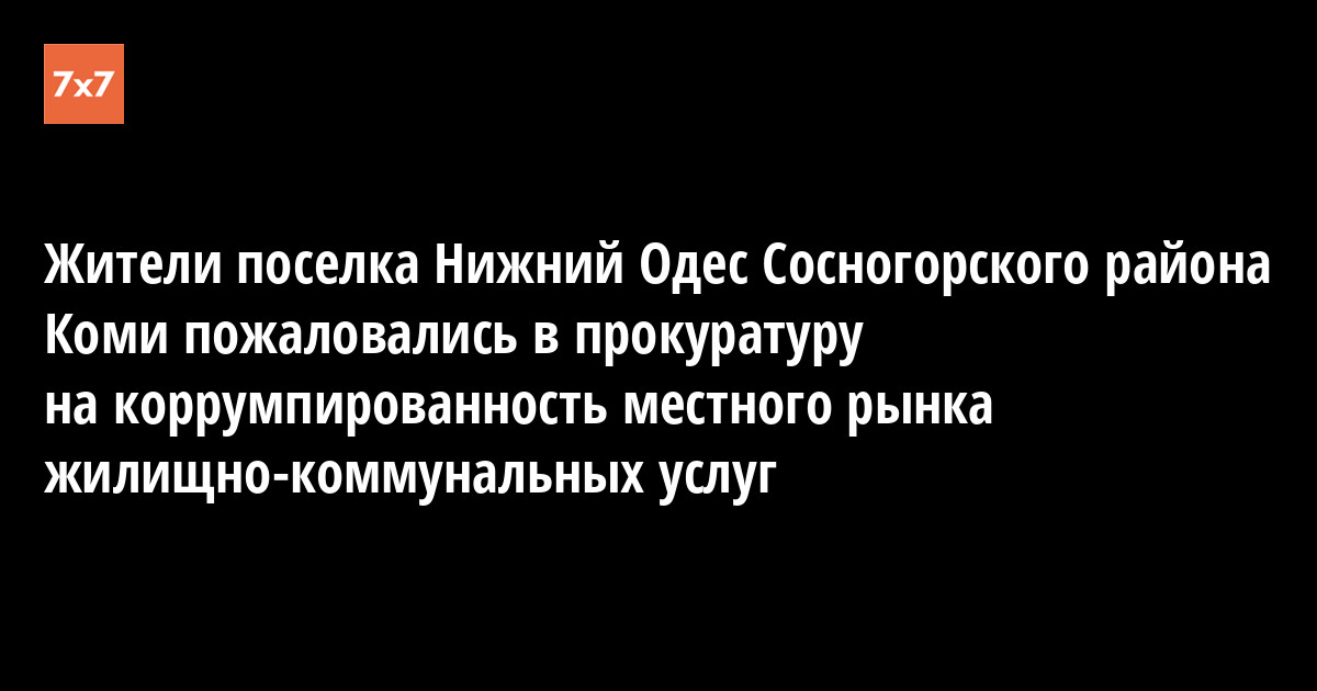 Как стало известно «7x7», недавно группа жителей поселка Нижний Одес Сосногорского района пожаловались в прокуратуру Коми на то, что два человека - курирующий «коммуналку» заместитель руководителя администрации поселения Нижний Одес Александр Мартын и директор ООО «Теплосервис» Лариса Милевская в личных интересах и не совсем законными методами держат под жестким контролем рынок услуг по управлению жилыми домами.