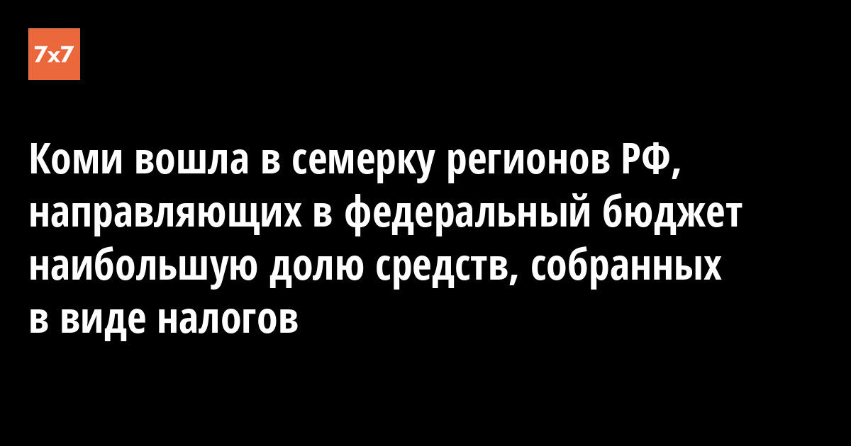 Вместе с тем Коми оказалась в семерке субъектов РФ, направивших в федеральный бюджет наибольшую долю от собранных на своей территории средств. Меньшая, чем в РК, часть средств от поступивших налогов осталась только в Ханты-Мансийском, Ямало-Ненецком и Ненецком автономных округах, а также в Томской, Оренбургской областях и Удмуртии.