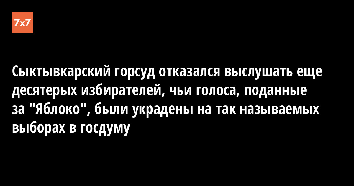 Сегодня в Сыктывкарском городском суде началось слушание по существу коллективной жалобы сыктывкарцев, оспаривающих результаты голосования на так называемых выборах в госдуму на участке №57 в «Лицее народной дипломатии». Шестеро заявителей, отдавших свои голоса за «Яблоко» и обнаруживших в итоговом протоколе избирательной комиссии только 4 голоса, поданных за эту партию, заявили суду о нарушении их избирательных прав и попросили признать недействительными результаты подсчета голосов на означенном участке и провести их пересчет. Из нескольких ходатайств, поданных сегодня заявителями для установления истины, судья Иван Олейник удовлетворил лишь одно, наименее значимое.