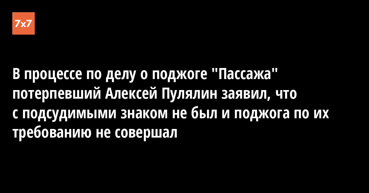 В процессе по делу о поджоге "Пассажа" потерпевший Алексей Пулялин заявил, что с подсудимыми знаком не был и поджога по их требованию не совершал