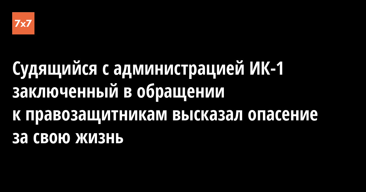 Член Общественной наблюдательной комиссии (ОНК) Республики Коми по осуществлению общественного контроля за обеспечением прав человека в местах принудительного содержания Ирина Виноградова направила вчера в «7x7» обращение заключенного расположенной под Сыктывкаром ИК-1 Сергея Малыгина, который просит у общественников содействия в обеспечении безопасности его жизни и здоровья, угроза которым, по его мнению, исходит от администрации колонии.