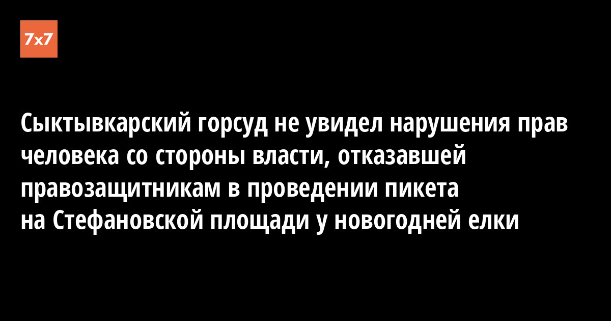 «Комитет…» ответил письмом с предложением провести пикет в другом месте, ссылаясь при этом на статью 8 Федерального закона «О собраниях, митингах, демонстрациях, шествиях и пикетированиях», вышеуказанное постановление мэра Сыктывкара, а также на то обстоятельство, что в центральной части Стефановской площади расположены ледовый городок и новогодняя ель.