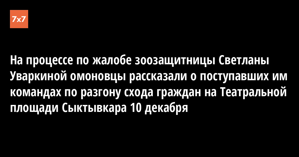 - Мы работали в оперативном резерве, поступила команда, что возле театра проходит несанкционированный митинг. Проехали туда, с нами провели инструктаж, что действия граждан незаконны, так как им не разрешили проводить митинг. Далее поступила команда… растеснить народ, чтобы все шли по домам… Мы пошли цепочкой, начали потихоньку оттеснять народ. Народ не отходил. Поступила команда задержать самых активных. Светлана Уваркина стояла, кричала «Позор ОМОНу!», всякие непристойные вещи, просила народ не расходиться. Решили, так как она была одной из самых активных, передать ее конвойной группе. Взяли я и Кузьмин (второй свидетель, омоновец Сергей Кузьмин – «7x7») и передали по цепочке конвойной группе для дальнейшего доставления в автобус. Мы неоднократно просили ее пройти в автобус, она хваталась, держалась за форменную одежду, отказывалась пройти с нами…