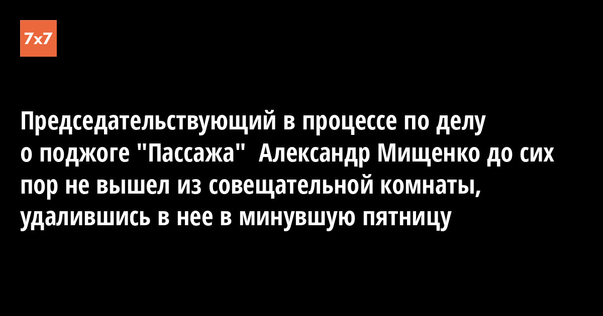 Председательствующий в процессе по делу о поджоге "Пассажа" Александр Мищенко до сих пор не вышел из совещательной комнаты, удалившись в нее в минувшую пятницу