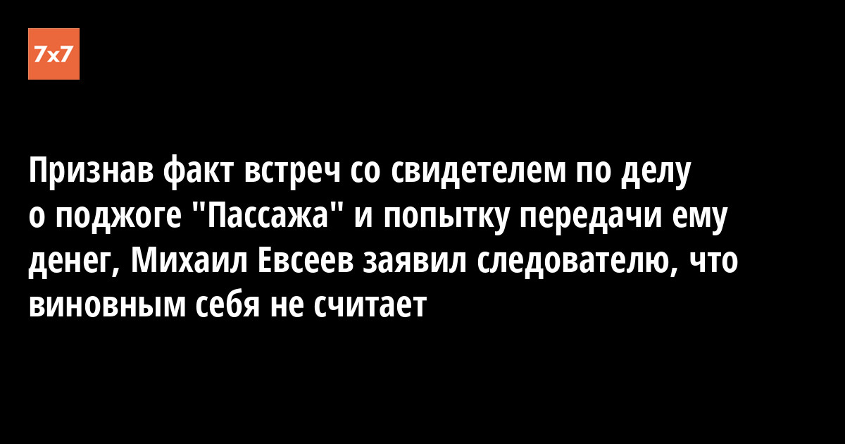 Подозреваемый в совершении преступления, предусмотренного ч.4 ст.309 УК РФ (подкуп или принуждение к даче показаний или уклонению от дачи показаний, совершенные организованной группой), Михаил Евсеев был впервые допрошен сегодня следователем Игорем Овсянниковым, и по свидетельству адвоката Антона Косырева, с которым связался корреспондент «7x7», заявил под протокол, что, действительно, встречался с г-ном Колесниковым в Екатеринбурге и Сыктывкаре и предлагал ему дать правдивые показания в суде.