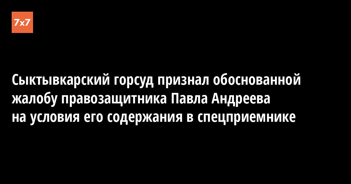 Сыктывкарский городской суд сегодня частично удовлетворил жалобу члена правления Коми правозащитной комиссии (КПК) «Мемориал» Павла Андреева, просившего признать незаконными условия его содержания в спецприемнике УМВД России по Сыктывкару, где его продержали почти двое суток как одного из предполагаемых организаторов разогнанной полицией акции протеста против нечестных выборов в госдуму на Театральной площади Сыктывкара 10 декабря прошлого года.