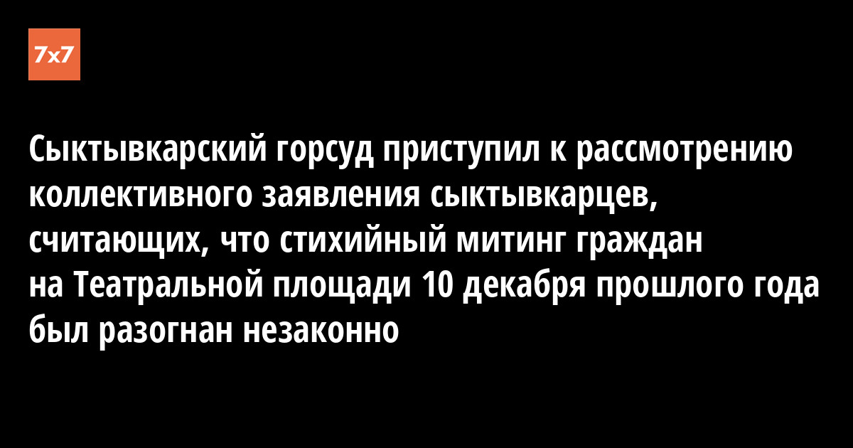 Сегодня Сыктывкарский горсуд приступил к рассмотрению коллективного заявления десяти сыктывкарских правозащитников и гражданских активистов, которые просят признать незаконными действия властей по разгону стихийного митинга граждан, состоявшегося 10 декабря прошлого года на Театральной площади столицы Коми в рамках всероссийской акции протеста против нечестных выборов.