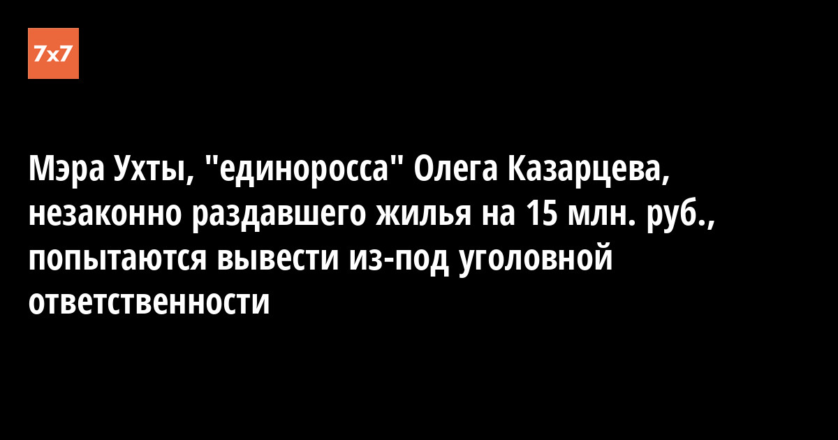 Как стало известно «7x7», Следственное управление Следственного комитета (СУСК) РФ по Коми еще 8 июня возбудило уголовное дело на основании поступивших из прокуратуры РК материалов по 8 фактам незаконного предоставления в 2008-2010 годах руководителем администрации МО ГО «Ухта» Олегом Казарцевым жилья не имеющим на то никаких прав лицам, в результате чего муниципальной казне был нанесен ущерб на сумму более 15 млн. руб. Дело было возбуждено по факту превышения лицом должностных полномочий (ч.1. ст. 286 УК РФ), однако само лицо в постановлении о возбуждении уголовного дела не указывалось.