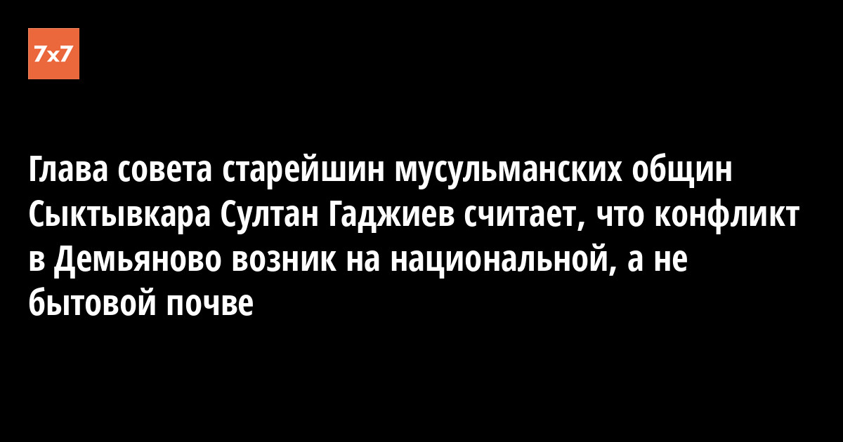 Сегодня председатель совета старейшин мусульманских общин Сыктывкара Султан Гаджиев сообщил «7х7» некоторые подробности инцидента, произошедшего на прошлой неделе в поселке Демьяново Кировской области, где между коренными жителями и дагестанцами случился конфликт, едва не переросший в побоище. Г-н Гаджиев был непосредственным участником событий в Демьяново.