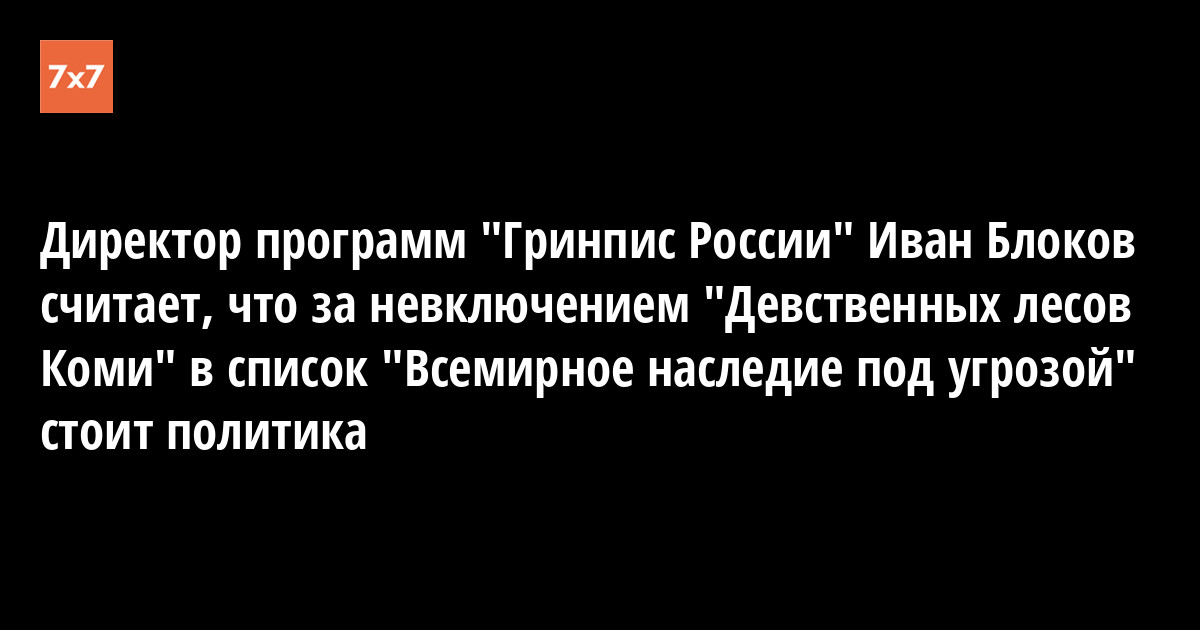 Комитет всемирного наследия ЮНЕСКО на своей 36-й сессии, которая проходит в эти дни в Санкт-Петербурге, большинством голосов отклонил предложение участников состоявшегося в том же городе 22-24 июня с.г. первого Международного форума неправительственных организаций «Защита объектов всемирного наследия» перевести объект всемирного наследия «Девственные леса Коми» в список «Всемирное наследие под угрозой». Один из участников мероприятия ЮНЕСКО, директор программ «Гринпис России» Иван Блоков сегодня прокомментировал произошедшее для «7x7».