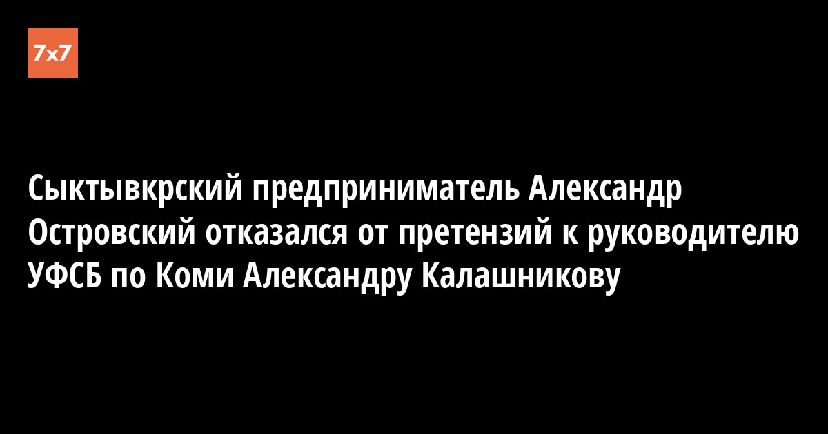 Сегодня в Сыктывкарском горсуде состоялось очередное заседание по иску предпринимателя, члена правления Коми правозащитной комиссии (КПК) «Мемориал» Александра Островского к владельцу сайта skandaly.ru Владимиру Чеснокову, разместившему, по мнению заявителя, не соответствующую действительности информацию о его частной и общественной деятельности, и к руководителю УФСБ по Коми Александру Калашникову, на слова которого об экстремистской сущности КПК, в частности, ссылается автор порочащей честь и достоинство правозащитника статьи. Итогом заседания стал отказ г-на Островского от претензий к начальнику УФСБ по Коми.