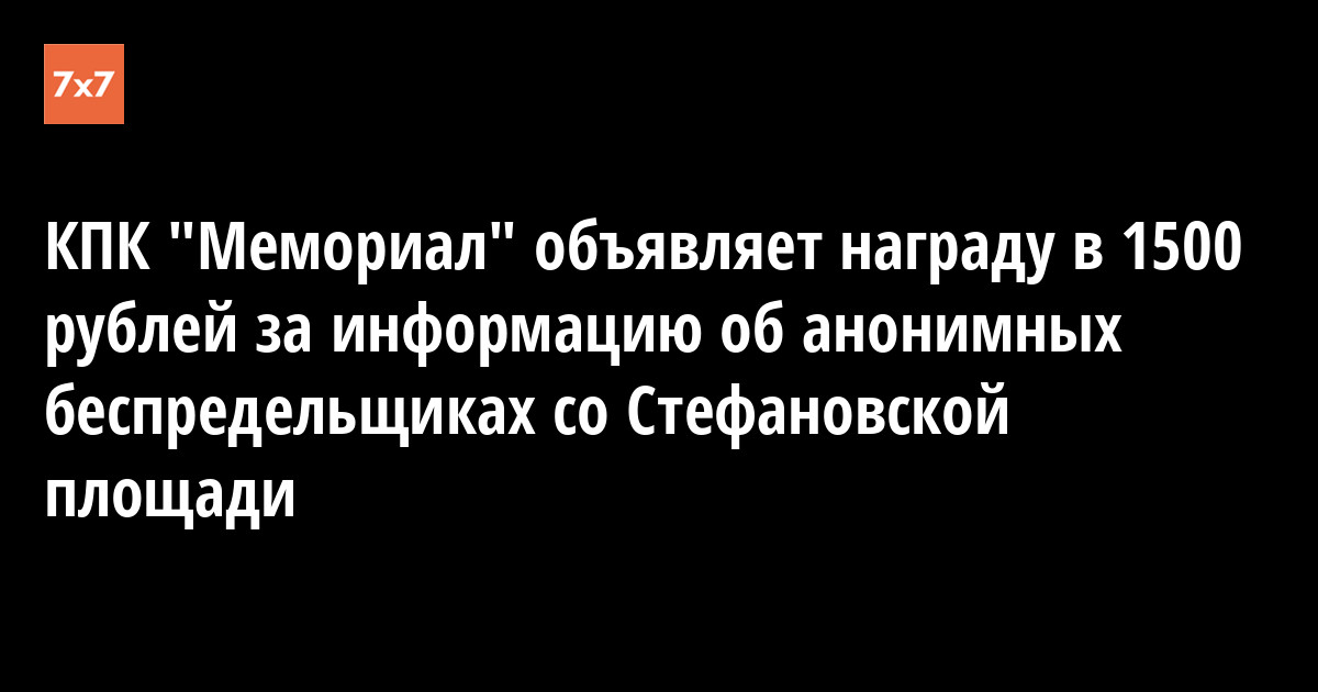 Вчера утром на сайте «7x7» были опубликованы фотографии анонимных врагов свободной прессы и аудиозапись с угрозами, сделанные на Стефановской площади. После этого член правления КПК «Мемориал» Эрнест Мезак на своей странице в социальной сети «Вконтакте» написал, что готов выплатить 1000 рублей тому, кто первым предоставит достоверную информацию о личностях правонарушителей.