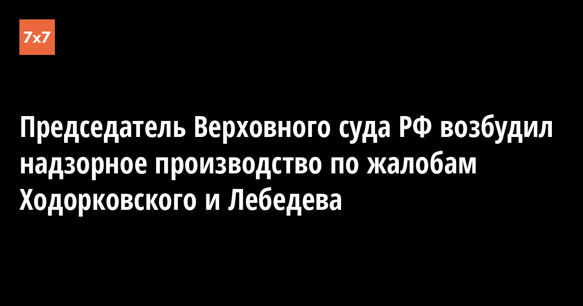 Председатель Верховного суда Вячеслав Лебедев своим решением возбудил надзорное производство по жалобам экс-руководителей "ЮКОСа" Михаила Ходорковского и Платона Лебедева, сообщает Интерфакс. Председатель ВС рассмотрел надзорные жалобы Ходорковского и адвокатов Лебедева и отменил постановление судьи Верховного суда об отказе в удовлетворении их надзорных жалоб.