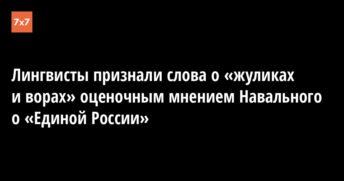 Эксперты пишут: “Анализируемое высказывание представляет собой типичный негативно-оценочный квалификатив, истинной целью которого является выражение негативного отношения А.А.Навального к партии “Единая Россия”. Его коммуникативная направленность логически может быть выражена следующим образом: “Произнося суждение “Единая Россия” - партия жуликов и воров”, говорящий на самом деле имеет в виду примерно следующее: [Я негативно отношусь к партии “Единая Россия”, потому что, по моему мнению, неопределенное количество ее членов могут быть охарактеризованы как “жулики и воры”]”.