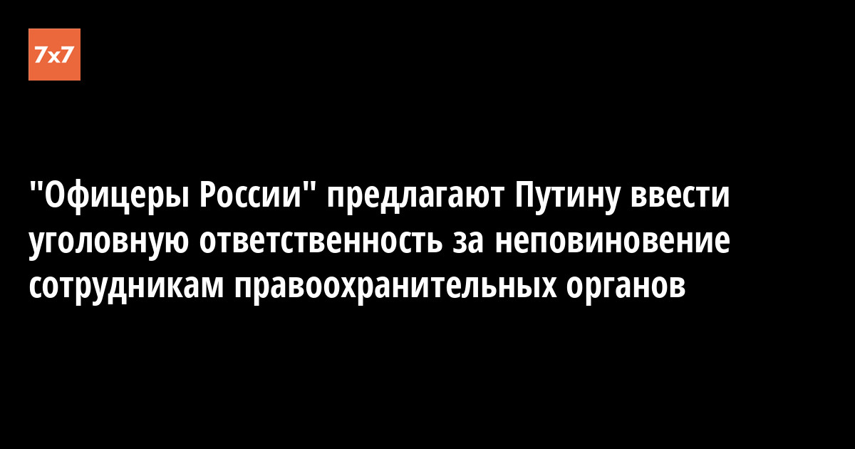 «Офицеры России» отправили президенту письмо с просьбой перевести ст. 19.3 КоАП РФ («Неповиновение законному распоряжению сотрудника правоохранительного органа») из административного в уголовное законодательство. Думская оппозиция усматривает в инициативе попытку дальнейшего «закручивания гаек».