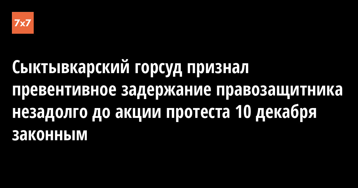 Сыктывкарский горсуд признал превентивное задержание правозащитника незадолго до акции протеста 10 декабря законным