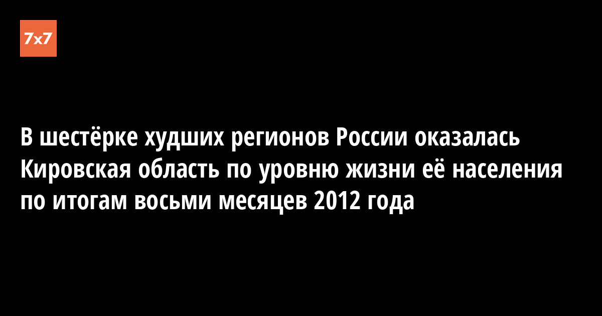 Министерство регионального развития России опубликовало доклад «О ситуации в экономике, финансово-банковской и социальной сферах субъектов Российской Федерации в январе-августе 2012 года». Кировская область по сводному индексу доходов и занятости населения (85,4%) заняла в рейтинге министерства 78-е (из 83-х возможных) место среди регионов страны.