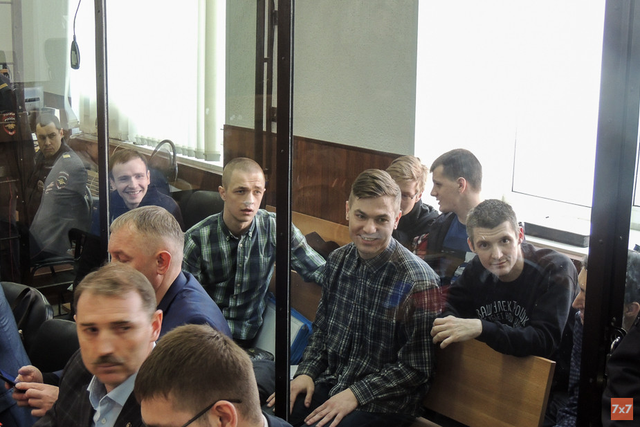 На открытый процесс 25 апреля пришло около 30 человек, в основном родственники и друзья задержанных. На входе в здание суда они прошли усиленный досмотр, а в холле суда дежурили сотрудники полиции и судебные приставы.