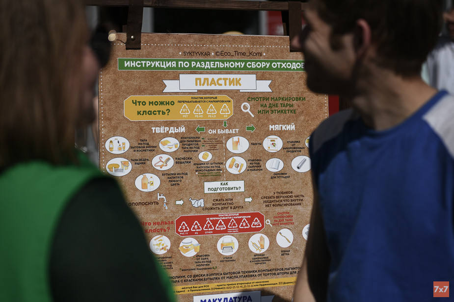 Волонтеры из Коми регионального отделения Российского экологического общества рассказывали интересующимся про вред от складирования мусора на полигонах и свалках и о том, как можно перерабатывать различные виды мусора.