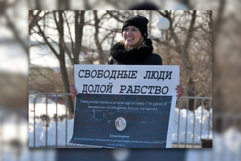 Активистка и бывший воспитатель детского сада «Непоседы» в Чебоксарах Елена Блинова 6 мая обратилась в ЕСПЧ с жалобой на ограничение ее права на политические убеждения. Заведующая детсадом №203 Вероника Хаялутдинова уволила ее 3 апреля 2017 года за «неоднократное неисполнение трудовых обязанностей». В этот же день активистку допросили в управлении МВД по Чувашии в связи с ее участием в антикоррупционном митинге политика Алексея Навального «Он вам не Димон» 26 марта 2017 года. Елена Блинова считает, что ее уволили из-за ее протестной активности, заведующая детсадом эту информацию опровергла. Что считают эксперты — в обзоре «7х7».