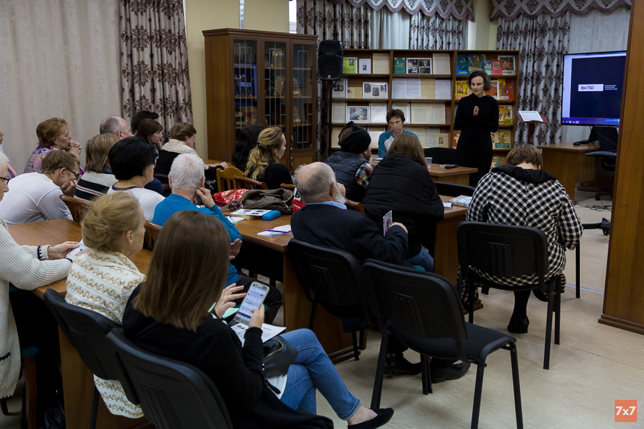 Встреча с сотрудниками Музея истории ГУЛАГа из Москвы проходила в научной библиотеке САФУ, в музее его истории. На нее пришли в основном люди среднего и старшего возраста: ученые университета, исследования которых касаются темы репрессий и непрофессионалы, которые собирают сведения о репрессированных родственниках самостоятельно. Всего собралось около 50 человек.