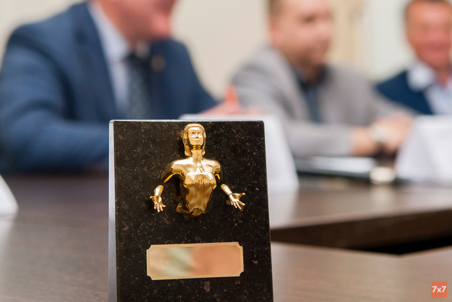 Глава адвокатской палаты представил учрежденную в прошлом году корпоративную награду за оправдательный приговор, пояснив, что статуэтка, изготовленная из гранита и позолоченной латуни, символизирует, как адвокаты пробивают стену правосудия. На пресс-конференции была представлена запасная, тринадцатая статуэтка с женской фигурой (среди 12 награжденных только одна женщина-адвокат, остальным вручены статуэтки с мужскими фигурами).