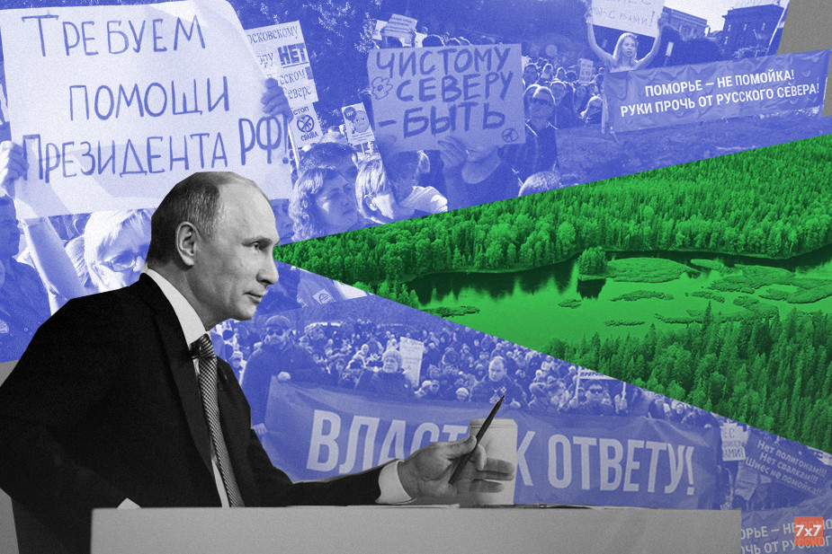 Мусорный полигон для ввоза мусора из Москвы и Московской области начали строить летом 2018 года на границе Архангельской области и Республики Коми. Жители двух регионов регулярно проводят массовые акции против строительства — в том числе несанкционированные. Некоторые из активистов отправляются на эковахту — лагерь рядом со стройплощадкой полигона.