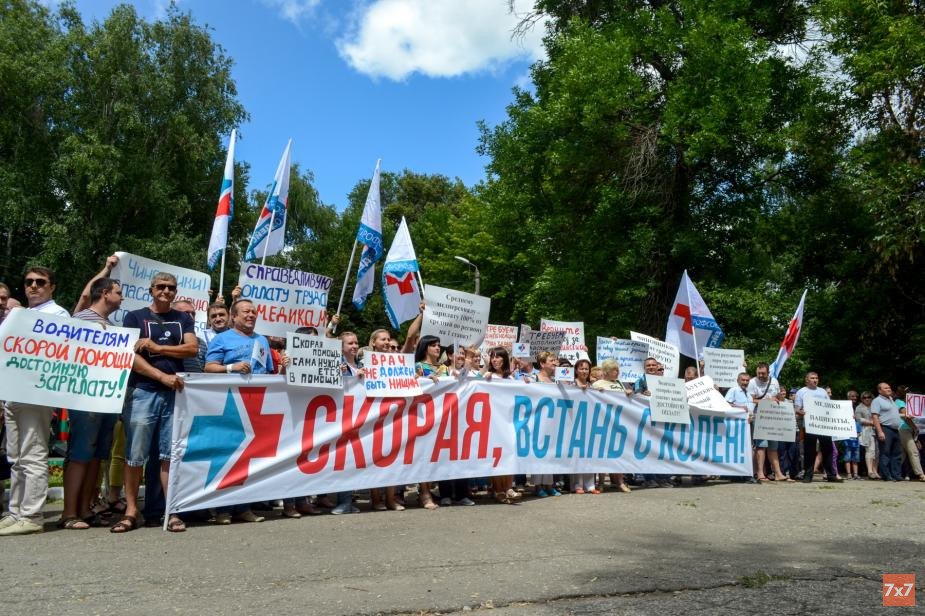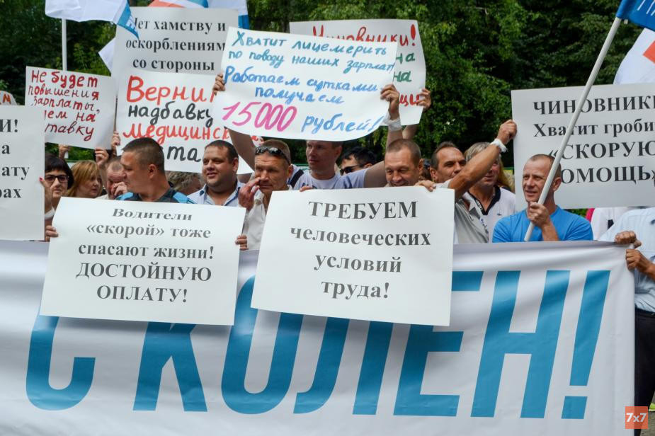 По словам Павла Кузнецова, с 26 июня десятки водителей, которые уже отработали свою норму часов, отказались выходить на работу. Более 200 работников среднего медперсонала написали заявления о нежелании работать по совместительству. Раньше они работали на полторы или две ставки, чтобы получать хорошую зарплату. Теперь они требуют поднять размер ставки до уровня средней зарплаты по региону.