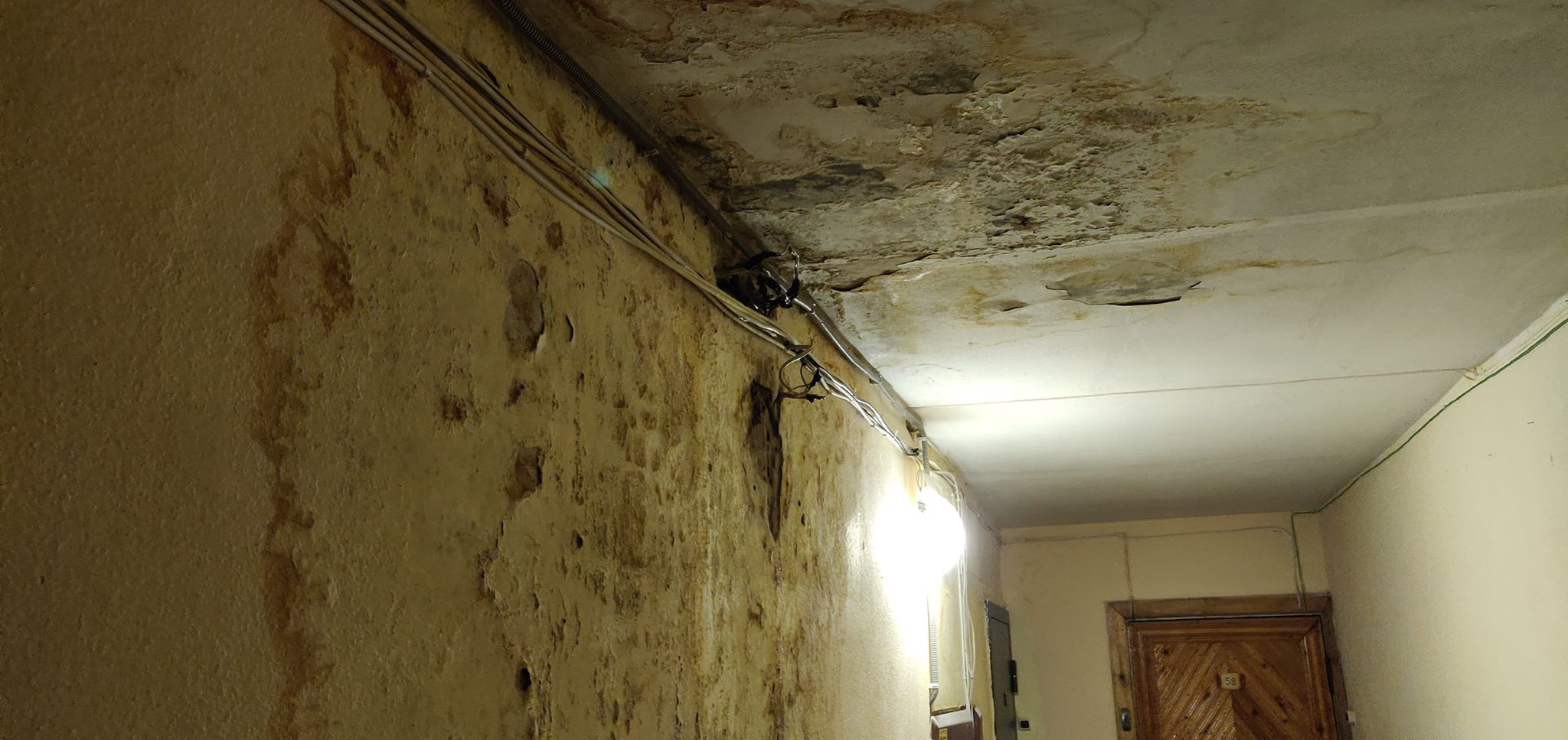 В этом же доме почти год текла крыша. Вода заливала подъезд и несколько квартир верхнего этажа. Крышу отремонтировали, а на просьбу устранить плесень руководство управляющей компании ответило жильцам, что денег на это нет, так как компания заплатила штраф по решению суда.