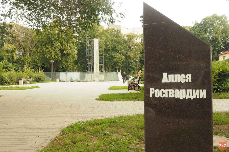 26 октября 2018 года в Рязань прибыл директор Федеральной службы войск национальной гвардии генерал армии Виктор Золотов. Вместе с губернатором Николаем Любимовым они открыли закладной камень, который был установлен на месте будущего памятника. Примерно в то же время в парке Железнодорожников внезапно появилась Аллея Росгвардии — идея ее появления не была вынесена на публичное обсуждение.