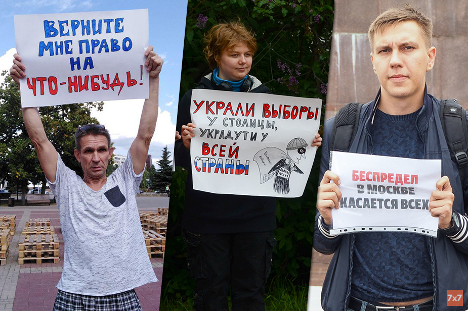 В России 10 августа по всей стране проходят акции солидарности с Москвой, где независимых кандидатов не допустили на выборы в Московскую городскую думу. Люди вышли с одиночными пикетами и потребовали освободить политических заключенных и провести честные выборы. «7x7» рассказывает, как прошли акции в поддержку москвичей и несостоявшихся кандидатов в депутаты столичного парламента.