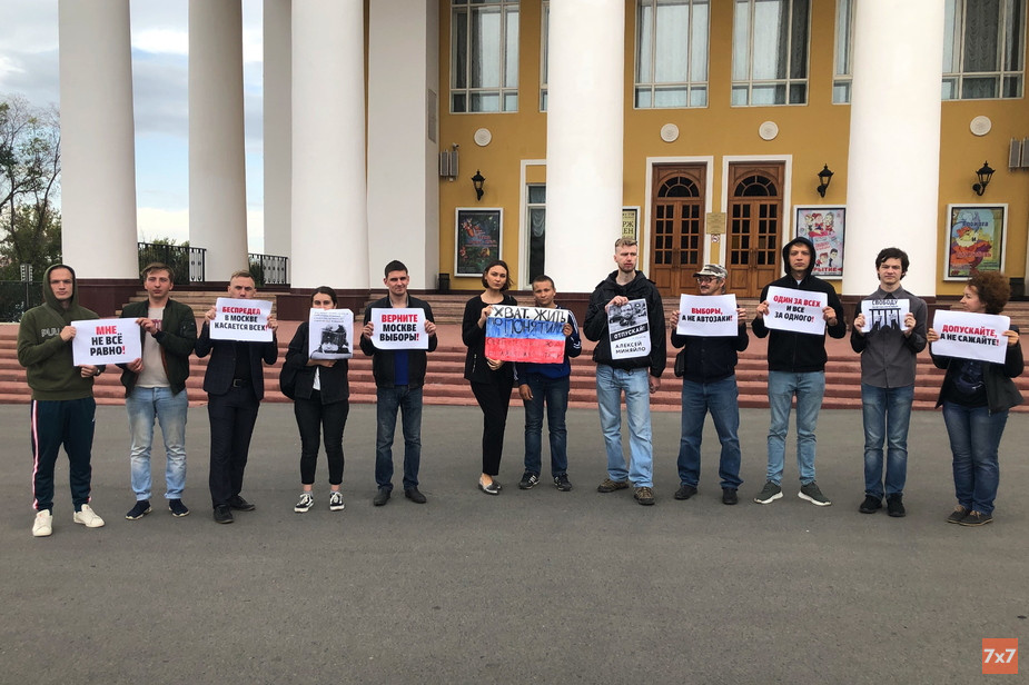 Около 30 человек вышли с флагами России и плакатами, критикующими действия полицейских во время протестных митингов в Москве, где люди требовали допустить независимых кандидатов на выборы. Участники пикета скандировали лозунги в поддержку юриста Фонда борьбы с коррупцией Любови Соболь, которую задержали перед согласованной акцией в Москве. Задержаний или провокацией во время пикета не было. Но за день до пикета сотрудники полиции ходили по квартирам сторонников Алексея Навального и требовали подписать предостережение об экстремизме.