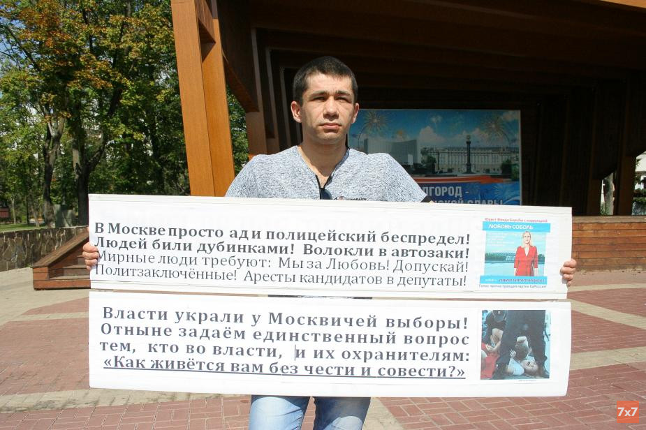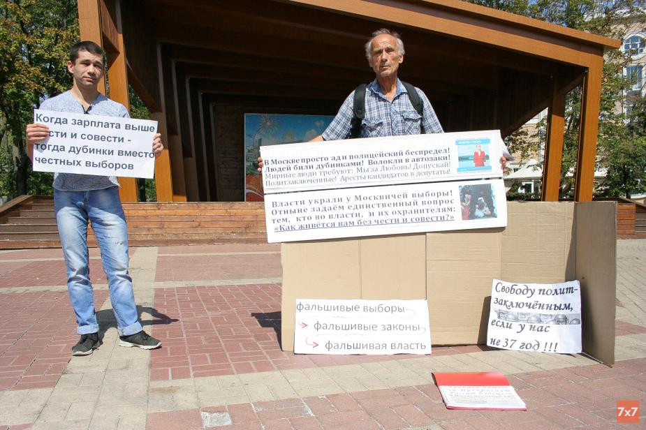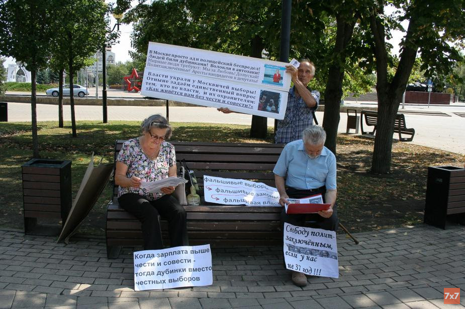 Во время серии одиночных пикетов 17 августа сотрудники полиции шесть раз подходили к пикетчикам и ни разу не сообщили о каких-либо нарушениях, а корреспонденту «7х7» объяснили, что никаких претензий не имеют, а лишь проверяют документы. 17 августа на сменяемый одиночный пикет выходили Юрий Поляков, Евгений Соколов и Андрей Рубан. Они провели акцию в парке Победы, затем отправились к фонтану на аллее городов-побратимов, а после — к облправительству. В парке к пикетчикам подходили и сотрудники ППС, и люди в гражданской одежде, представившиеся полицейскими, и женщина в полицейской форме, предложившая пойти вместе с ней в кафе «Оранжевый остров» и там дать объяснения по поводу акции. Активисты отказались общаться с сотрудниками полиции в общепите и продолжили пикетирование. Несколько раз участникам акции и корреспонденту «7х7» пришлось показать паспорта. 19 августа на согласованной акции сотрудники полиции документы не проверяли.