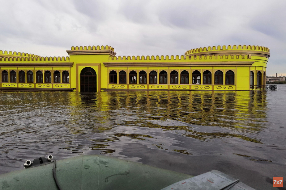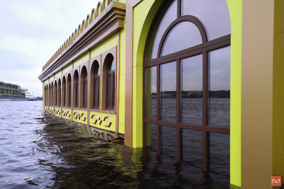Читатели передали в распоряжение «7х7» кадры изнутри плавучего ресторана. На них заметно, что там не завершен ремонт, а спуск в нижние палубы затоплен. Новая достопримечательность привлекла внимание горожан, посмотреть на него съехались местные жители, а блогеры запечатлели его с высоты птичьего полета.