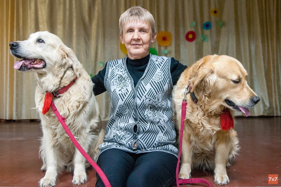 Хозяин собак-терапевтов — Владимир Варнавин — заводчик золотистых ретриверов. Обычно в канистерапии участвуют три его собаки, но на этот раз общаться с бабушками поехали только две — Пима и ее дочка Нелли. Третья недавно ощенилась и пока находится «в декретном отпуске».