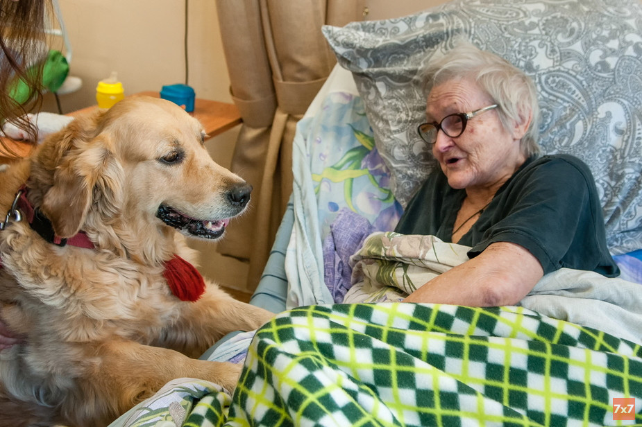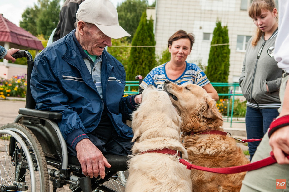 Команда костромской группы фонда «Старость в радость» с 2018 года проводит в домах престарелых сеансы канистерапии — реабилитации с помощью собак, которая помогает развивать умственные и эмоциональные способности, улучшает моторику и усиливает эффект реабилитации. 29 августа три девушки, решившие стать волонтерами, приехали в Заволжский дом-интернат Костромы и помогли его обитателям пообщаться с двумя очаровательными собаками.