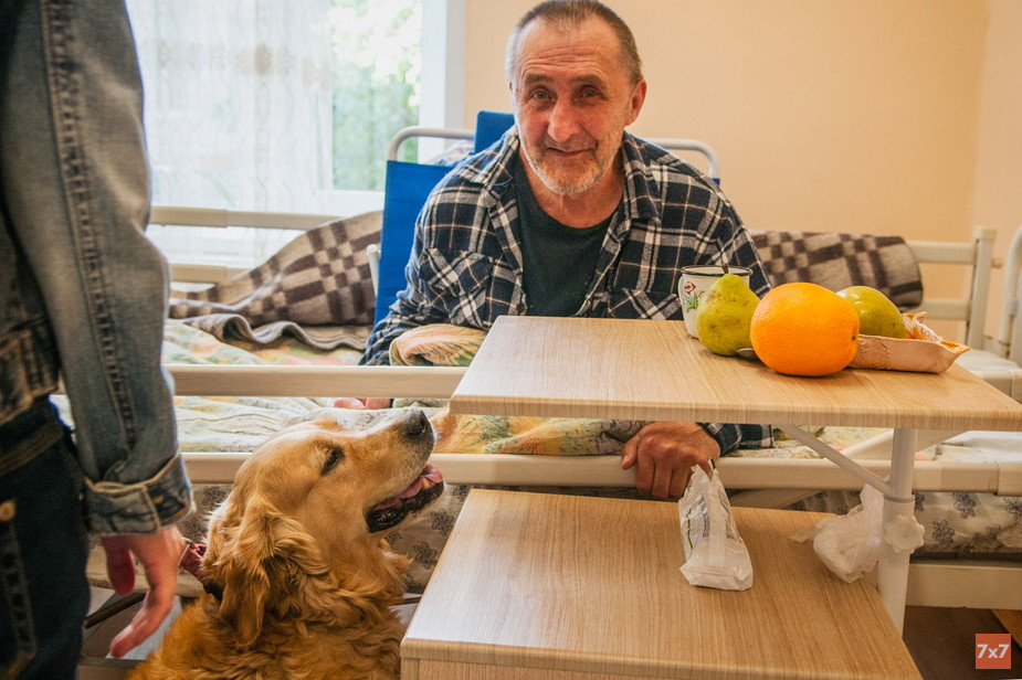 От идеи сплошного обхода палат решено отказаться, волонтеры с собаками заходят туда, где готовы к визиту гостей. Посещают в том числе и пациентов палаты самого сложного, геронтопсихиатрического, отделения (геронтопсихиатрия — лечение психических болезней в пожилом и старческом возрасте).