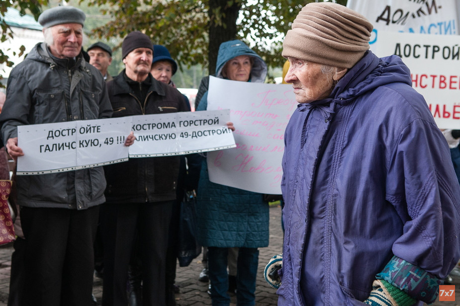 Заместитель директора департамента строительства, ЖКХ и ТЭК Николай Ухов рассказал участникам пикета, что решить проблему домов 9А и 9Б микрорайона Новый город (процент готовности домов — 75% и 10%), а также дома 49 по улице Галичской (готовность около 30%) силами области не представляется возможным. Поэтому власти пытаются получить деньги на достройку этих домов из федерального фонда защиты прав участников долевого строительства. Уже создан региональный фонд, поданы документы на его регистрацию. Костромские власти рассчитывают, что область получит деньги на завершение строительства домов при выделении из центра первого транша.