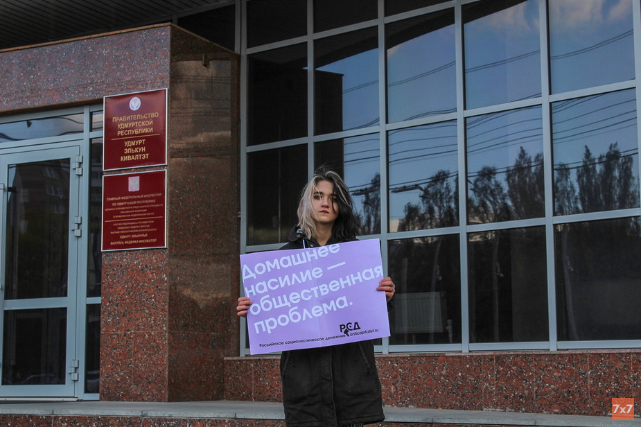 В Ижевске 28 сентября прошла серия одиночных пикетов в поддержку принятия в России закона о домашнем насилии. Они были приурочены к всероссийской акции «Марш сестер».