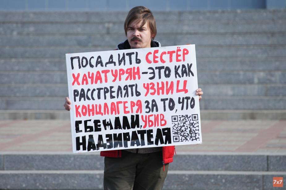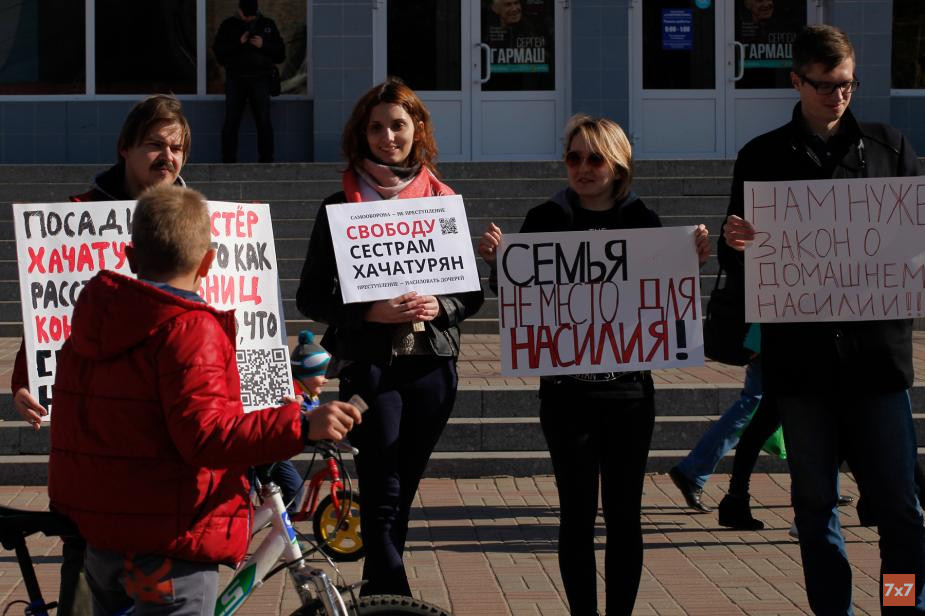 С 12:00 до 14:00 участники пикета стояли на площадке перед кинотеатром «Современник» с плакатами «Семья не место для насилия!», «Посадить сестер Хачатурян — это как расстрелять узниц концлагеря за то, что сбежали, убив надзирателя», «Традиция — это печь кулич вместе. Бить детей — насилие, а не традиция», «Выбор жертв домашнего насилия — быть убитым или сесть в тюрьму» и раздавали прохожим листовки с просьбой подписать петицию в поддержку сестер.