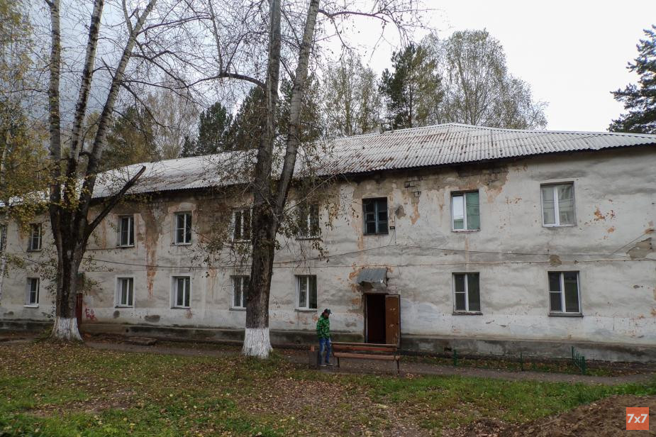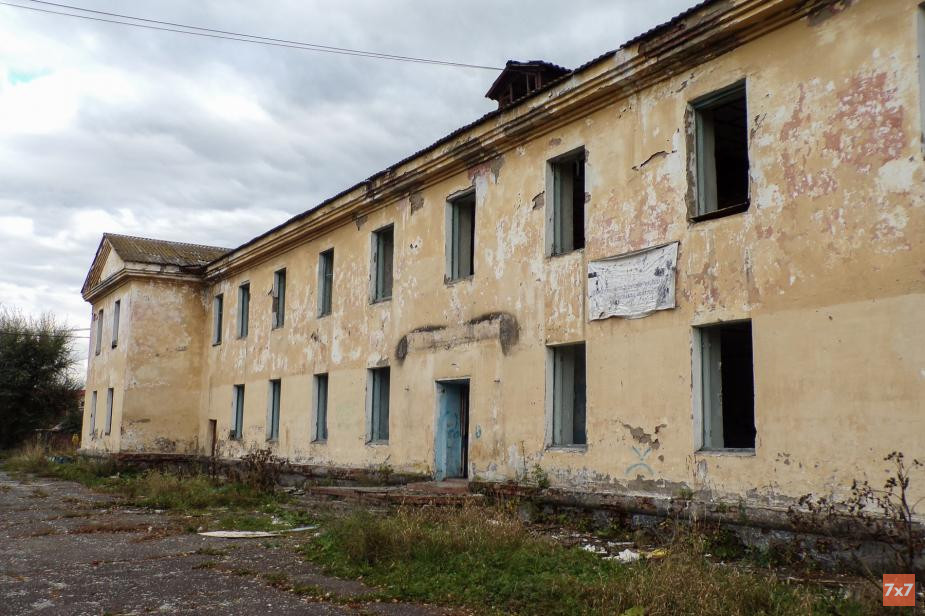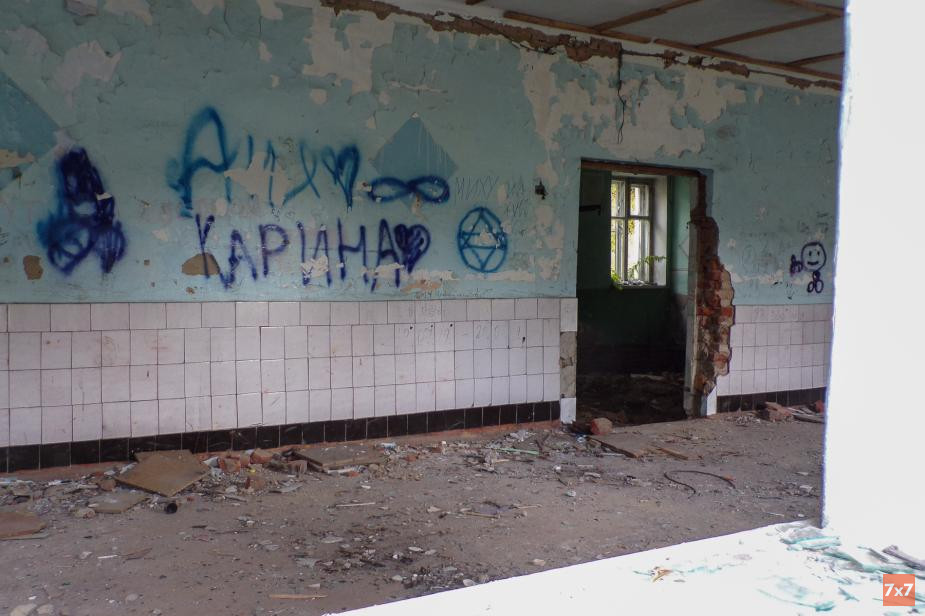 Здание школы, в которой учился Дмитрий и в которую его детям уже не довелось ходить. В нулевые на некогда сельских территориях, вошедших в состав Калтана, школы массово закрывались без учета мнения населения. Здание бывшей школы еще стоит, но окон и дверей нет, стены исписаны, под ногами битые стекла. Дети Миропольцева ездят на занятие в центр. Автобус ходит нерегулярно. Дмитрий сам отвозит детей на учебу. На эти и другие поездки по Калтану полный бензобак уходит за неделю.