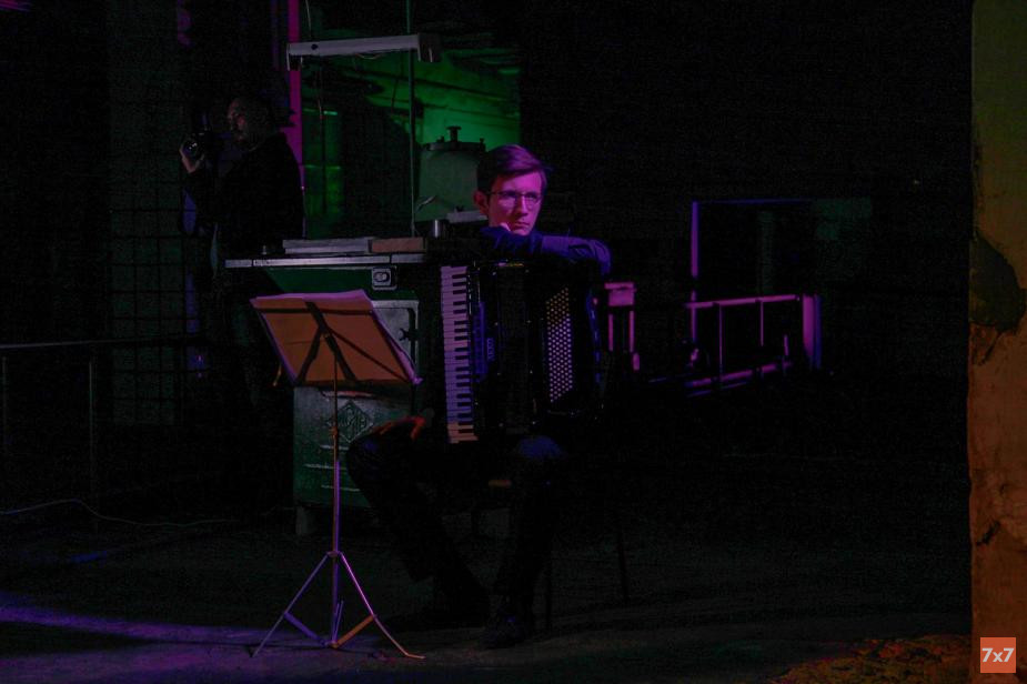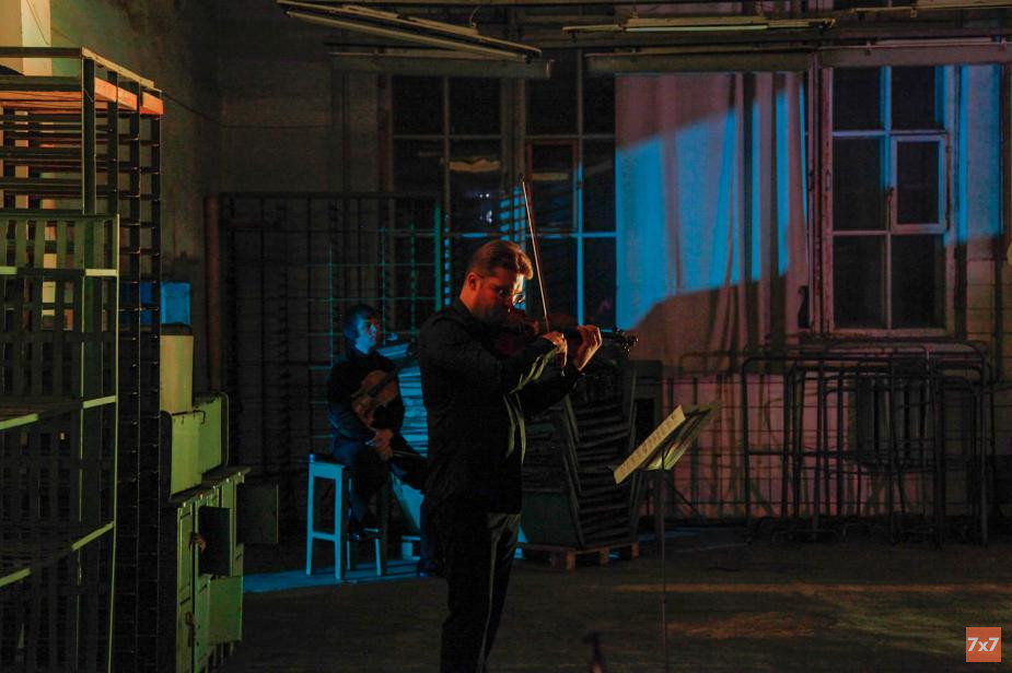 В этом году исполнители, музыканты из проекта «Геометрия звука», разыграли в цехе бывшей обувной фабрики произведение молодого российского композитора Даниила Посаженникова по либретто драматургов [МЕСТО: Смоленск].