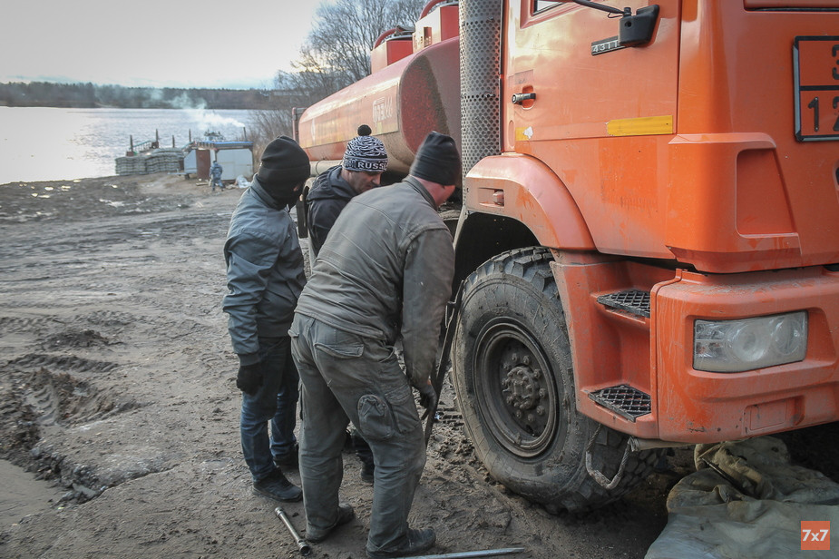 Несмотря на меры предосторожности, водителям бензовозов пришлось как минимум дважды менять колеса из-за проколов шин.