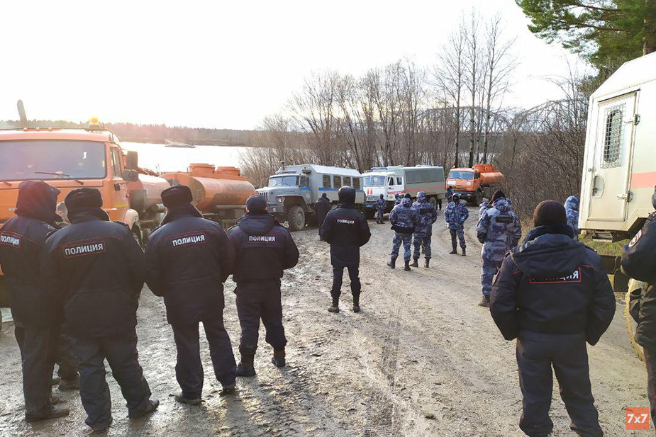 Автоцистерны с номерами Республики Коми доставили топливо на стройплощадку полигона для московского мусора у станции Шиес Архангельской области. Их безопасность обеспечивали сотрудники полиции и ОМОНа, а дорогу перед ними тщательно проверяли, однако водителям автоцистерн все равно дважды пришлось менять проколотые шины. Что произошло 23 октября у строящегося экотехнопарка "Шиес" — в обзоре «7x7».